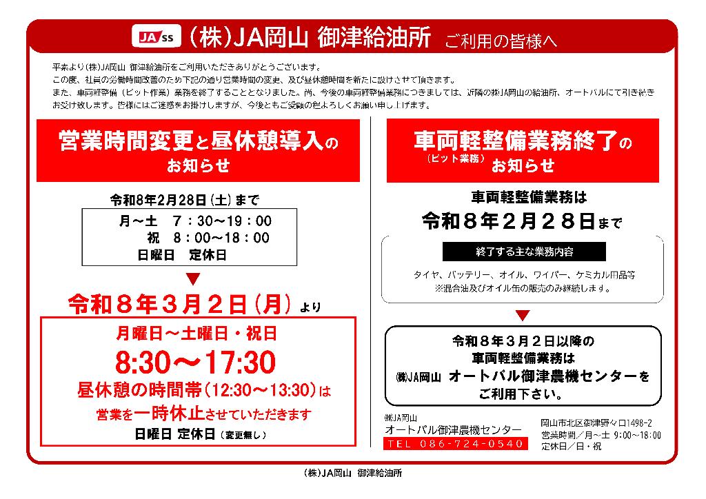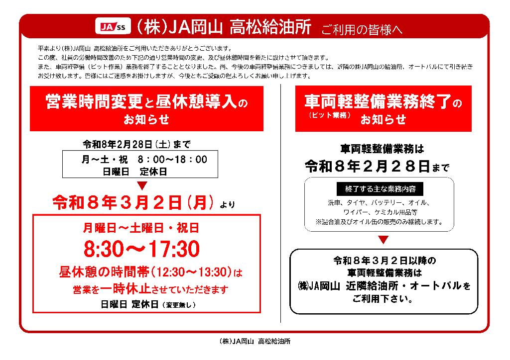 ㈱JA岡山 高松給油所・御津給油所からのご案内