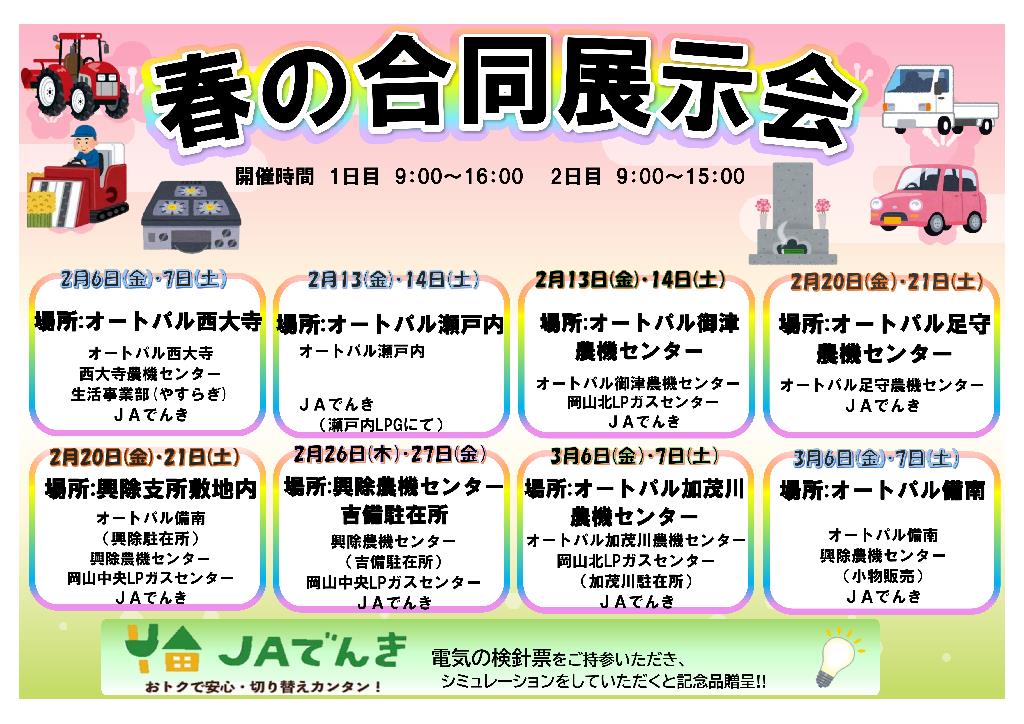 2026.02.16LPガス農機センターオートパル葬祭 🚜🎈🎀春の合同展示会のご案内🎈🎀🚜 ガスセンター、農機センター、オートパル、やすらぎ合同展示会を開催します。 ご来場お待ちしております!! 一覧へ戻る